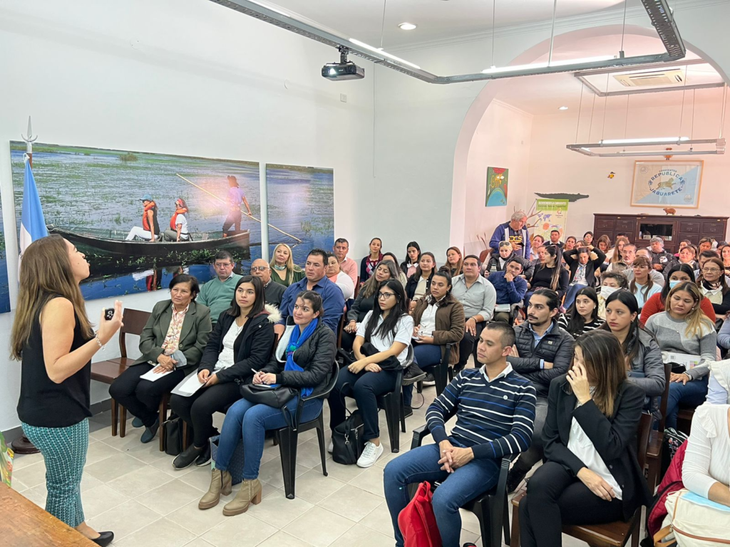 En tal sentido, la capacitación de quienes tienen la función de atender a los visitantes cumple un rol importante, por ello se desarrolló hoy en Casa Iberá el taller denominado “Anfitrión turístico como comunicador del alto impacto”. Alrededor de 70 referentes de 40 municipios se dieron cita para interactuar entre sí, y al mismo tiempo de compartir la experiencia de este encuentro de capacitación a cargo de la Dirección de Calidad del Ministerio de Turismo y Deportes de la Nación.