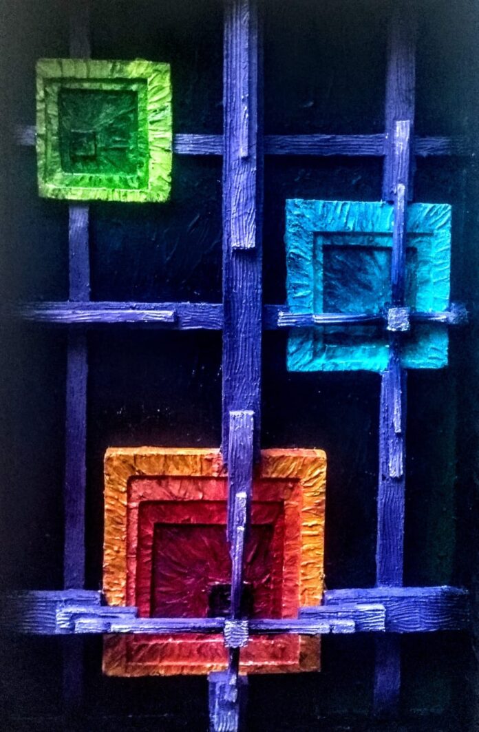 Su búsqueda auspicia tenacidad en la sensación de lograr el relieve. La puja vibracional del color en la moldura que, trabajada en la curva y contracurva y aún en la más sólida línea recta, permite admirar el surgimiento de la luz desde la oquedad del fondo, generalmente en tonos renegridos aplicados de manera plana.