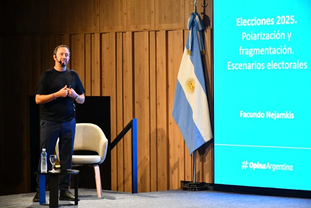 Convocado por el Banco de Corrientes y el Gobierno provincial, el consultor y director de Opina Argentina, Facundo Nejamkis brindó este viernes la charla: «Elecciones 2025, polarización y fragmentación: escenarios electorales». Tuvo lugar en el Auditorio Julián Zini de la ciudad de Corrientes, con ingreso por Blas Benjamín de la Vega 1699 a las 18 y ante un variado y amplio público, vaticinó que «lo que pase en octubre va a ser determinante» para los dos años siguientes de la presidencia de Javier Milei, por tanto, «hay mucho en juego».