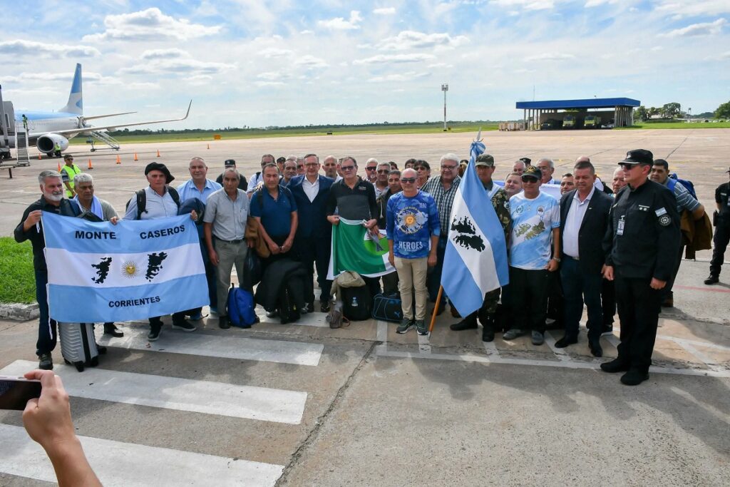 En representación del Gobierno provincial, el ministro de Seguridad, Alfredo Vallejos, despidió este viernes al quinto contingente compuesto por 20 excombatientes, 2 periodistas y un coordinador, que partieron desde el Aeropuerto “Dr. Fernando Piragine Niveyro” de la ciudad de Corrientes, con destino a las Islas Malvinas, a donde regresan luego de 43 años. En la oportunidad, se sumaron por primera vez 6 veteranos de guerra provenientes de San Bernardo, Chaco, y afirmaron que, al regreso del mencionado grupo, serán 100 los excombatientes correntinos que ya concretaron este significativo viaje, que forma parte de la “Causa Malvinas”, política de Estado para el gobernador Gustavo Valdés.
