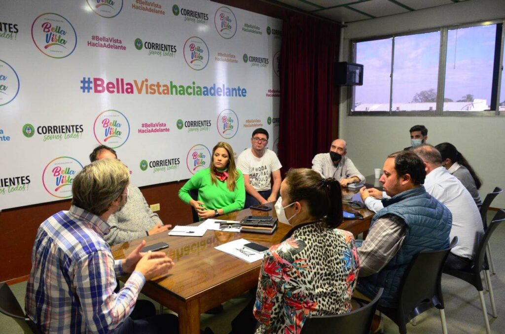 La jefa comunal de Bella Vista junto a sus colaboradores recibió a un equipo de técnicos y capacitadores del Instituto Nacional de Tecnología Industrial entre los que estaban el sub gerente operativo del NEA Mario Jarzinski, el director del INTI Corrientes Víctor Arocha, el especialista en capacitación de calderistas Sebastián Bretones y el ingeniero Jesús Espíndola, del Departamento de Gestión y Energías Renovables.