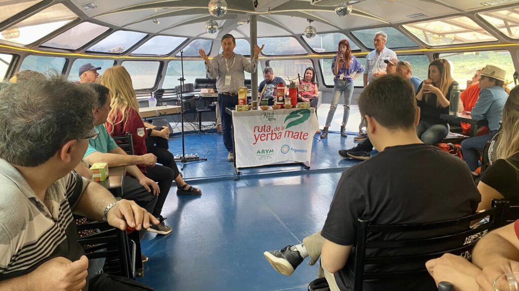 Dentro de los talleres de trabajo inter-municipales e internacionales, sobresalió la presentación de la #ExperienciaMisionesRutadelaYerbaMate en «el Hito de las 3 Fronteras» con #YerbaMateArgentina a cargo de Leopoldo Lucas pres. del Iturem y la #ExperienciaSensorialyCata de la #CoopYerbateraAndresito a cargo de Mauricio Bogado de la ARYM en el Catamarán Iguazú, dónde se realizó un hermoso paseo #CatamaránRíoIguazúMateEnManoRutadelaYerbaMate.